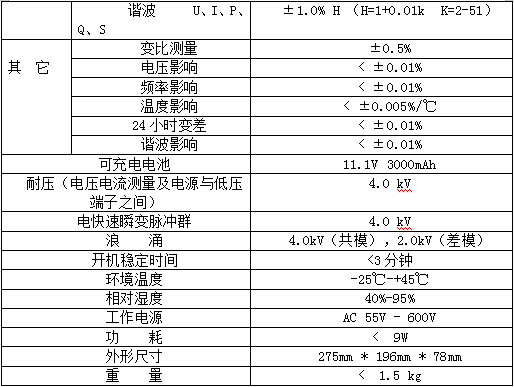 1同时计算全波、基波、谐波全部参数。在校验界面,同时实时显示全波基波的U、I、P、Q、VA、相角,以及谐波的合成U、I、P、Q、VA和百分比,U、I的正序、负序及零序含量,谐波的PH+、PH-、PH+/P基%、PH-/ P基%、全波PF、基波PF及谐波PF。